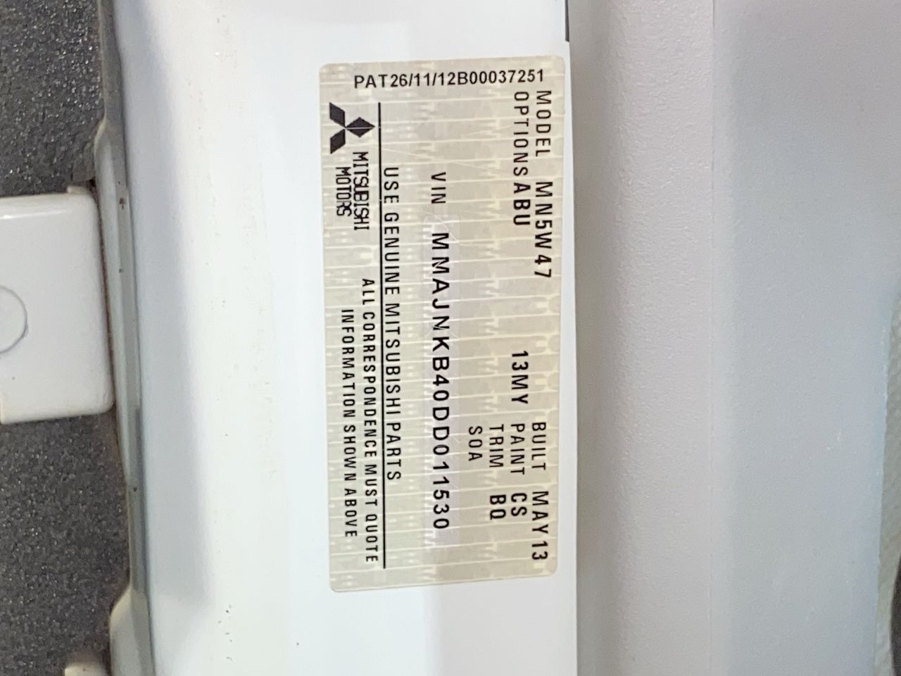 (SN:MMAJNKB40DD011530)