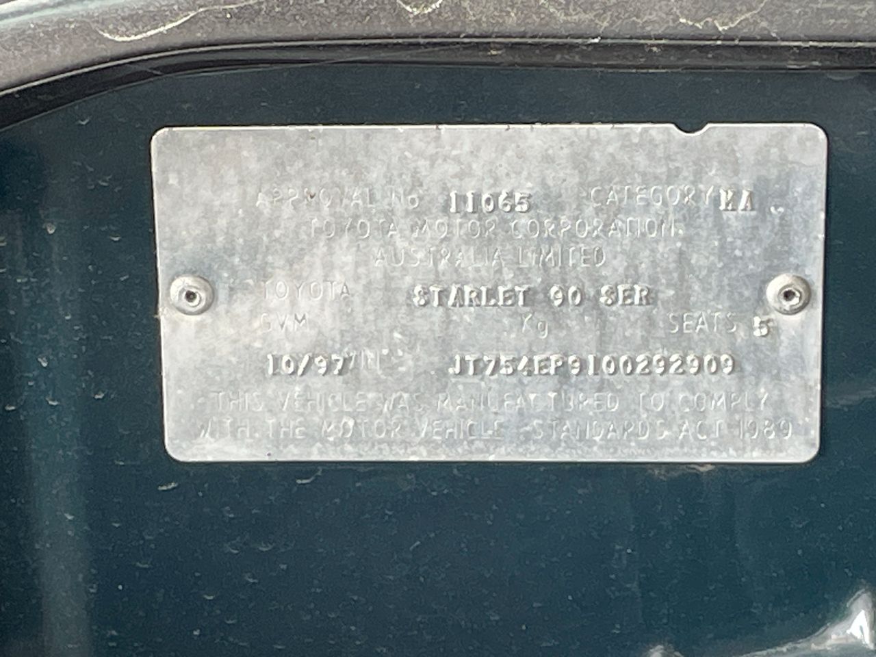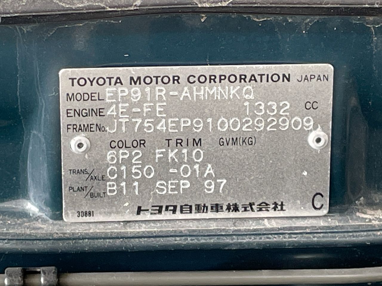 Part of Sale NO RES-1997 Toyota Starlet Life EP91R Manual Hatchback