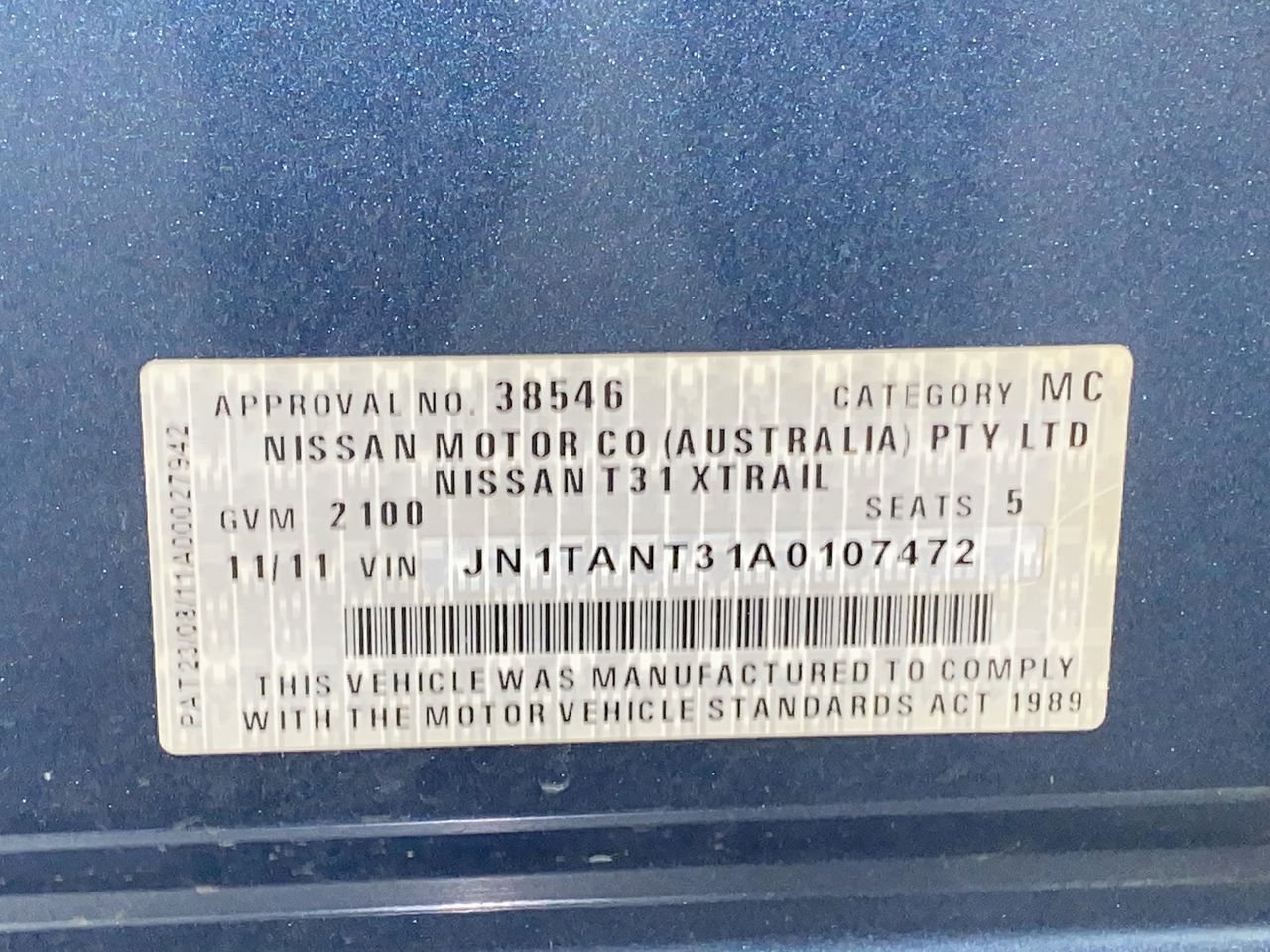 • VIN: JN1TANT31A0107472