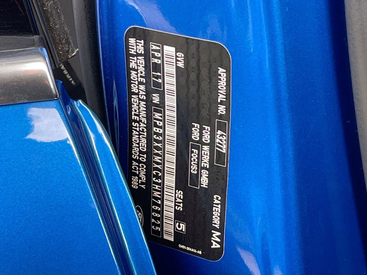 (SN:MPB3XXMXC3HM76825)
