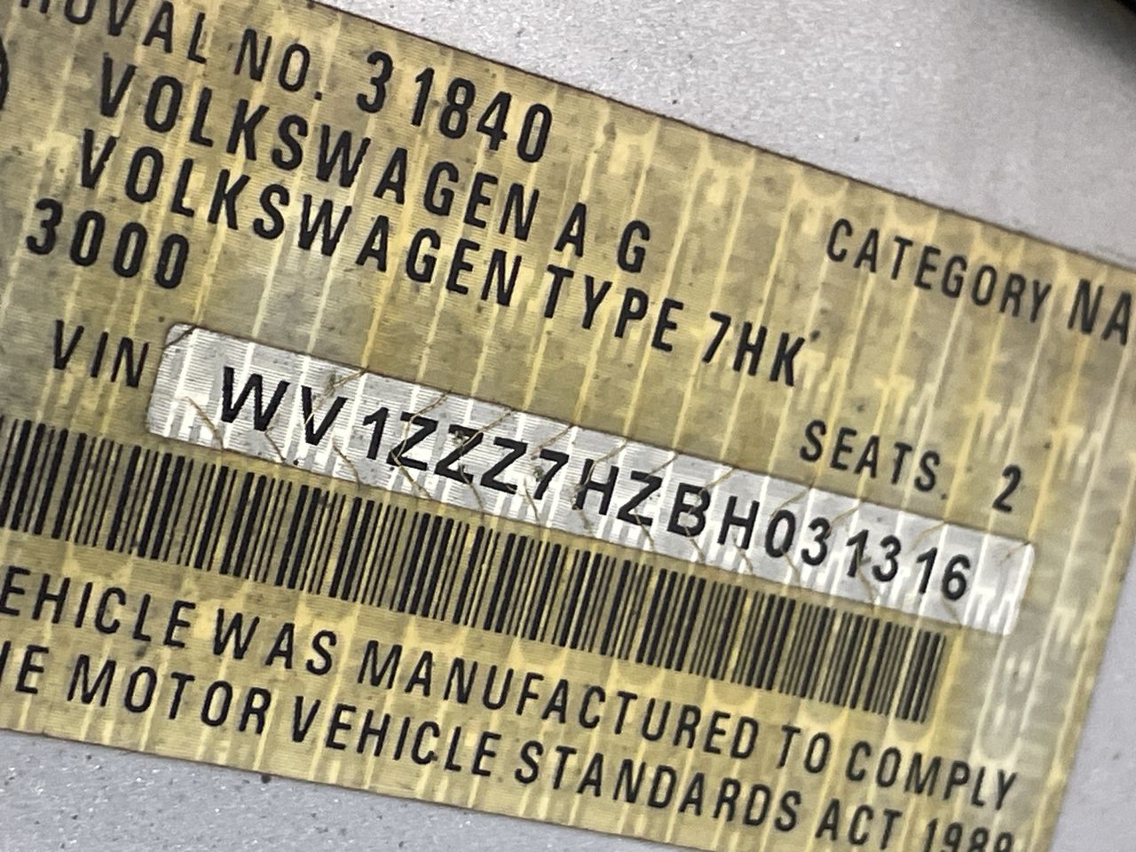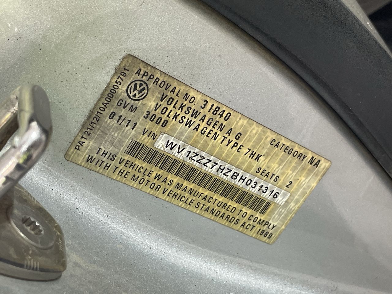 • VIN: WV1ZZZ7HZBH031316