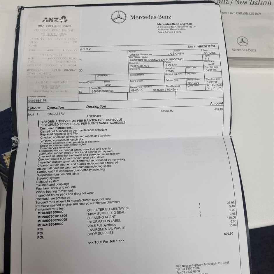 | Part of Sale | 2009 Mercedes Benz B200 TURBO W245 CVT Hatchback | ||||||||||||||||