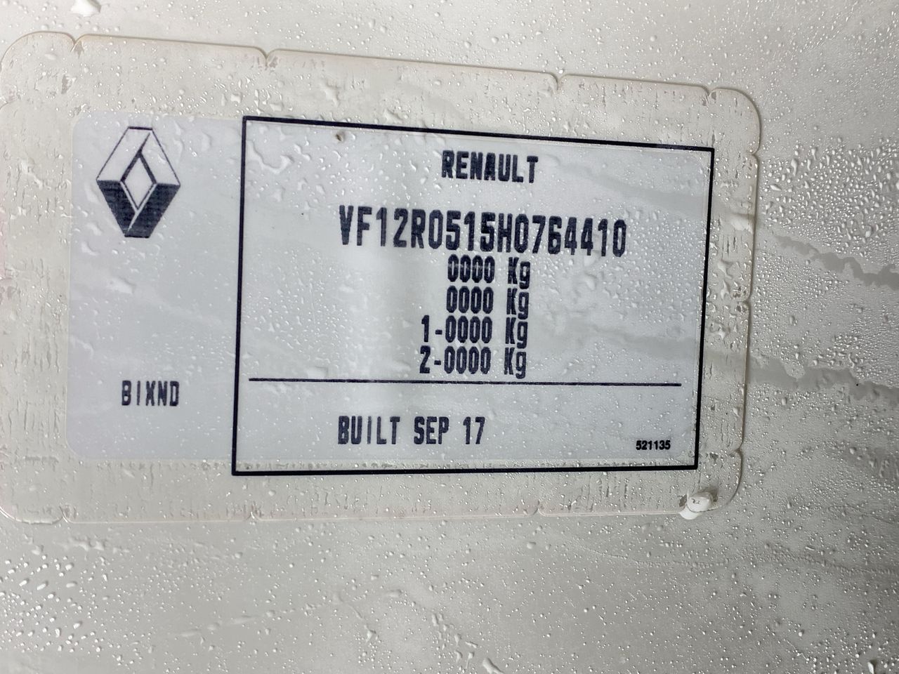 • VIN: VF12R0515H0764410