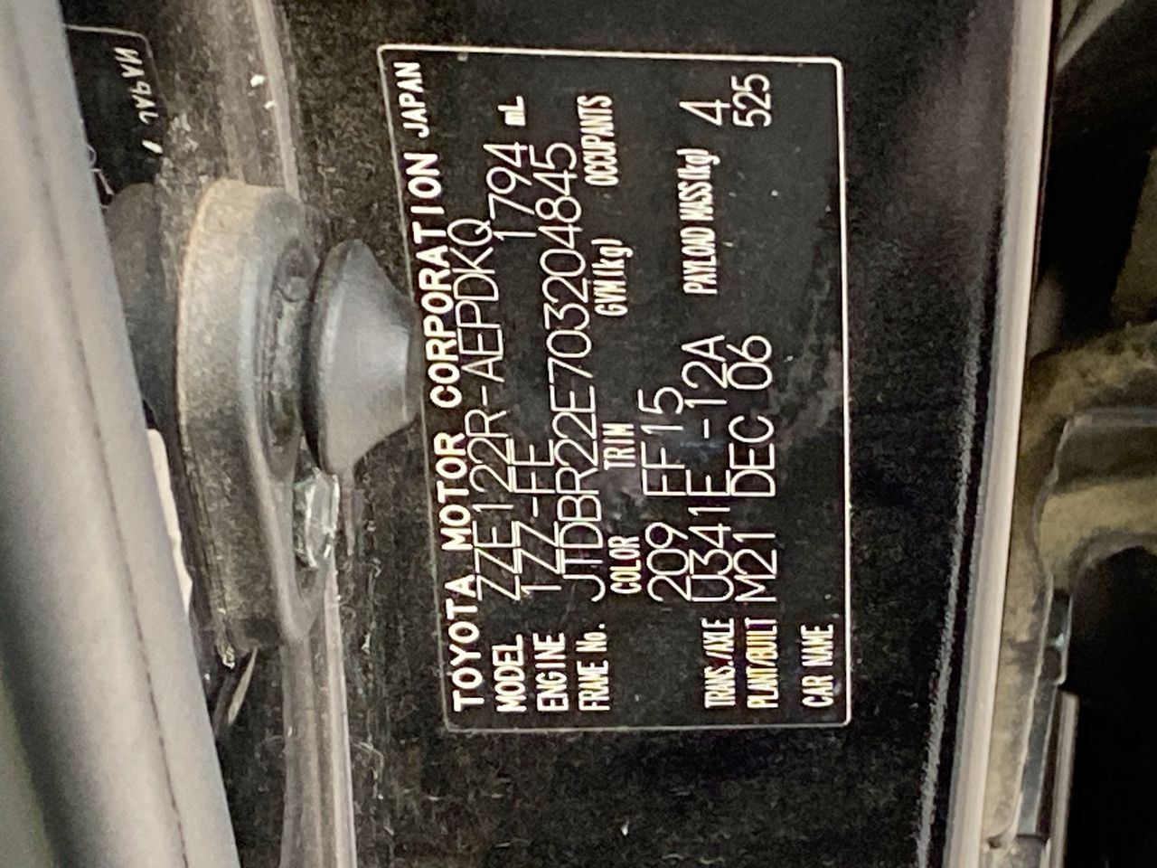 • VIN: JTDBR22E703204845