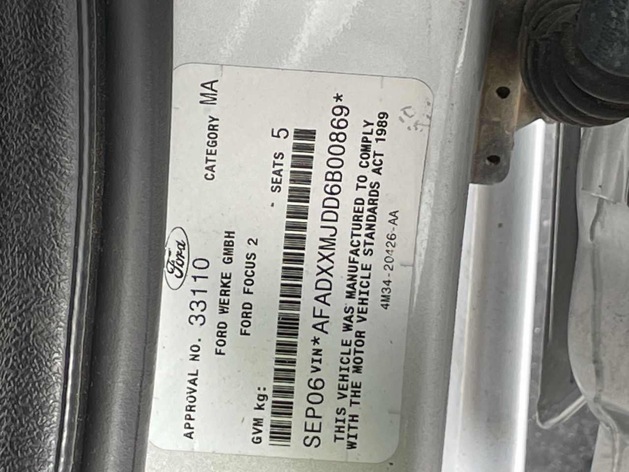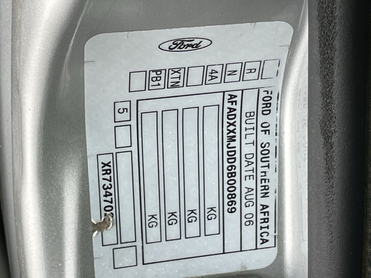 (SN:AFADXXMJDD6B00869) (124549-206)