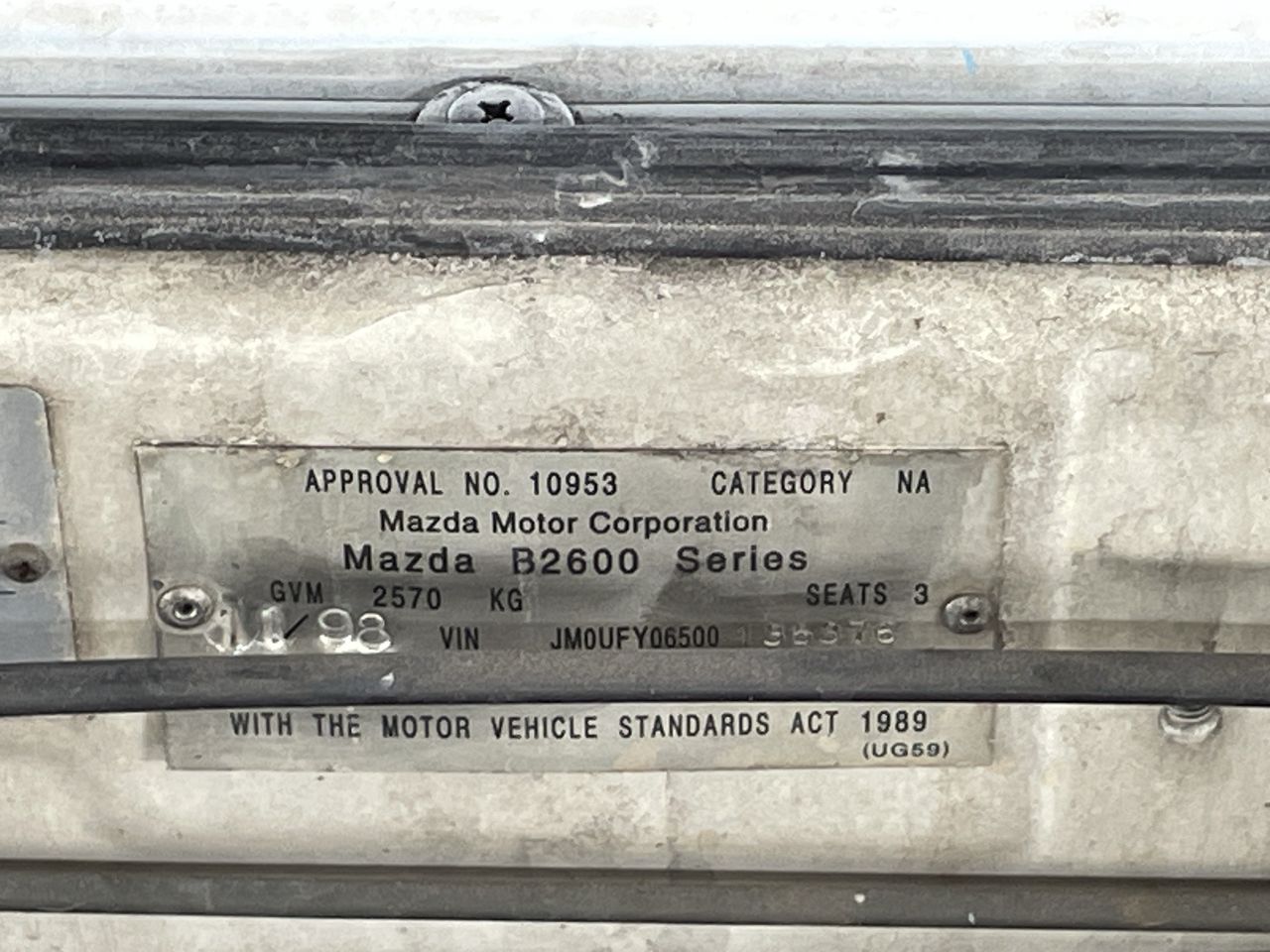 1998 Mazda B2600 Bravo B2600 Manual Cab Chassis