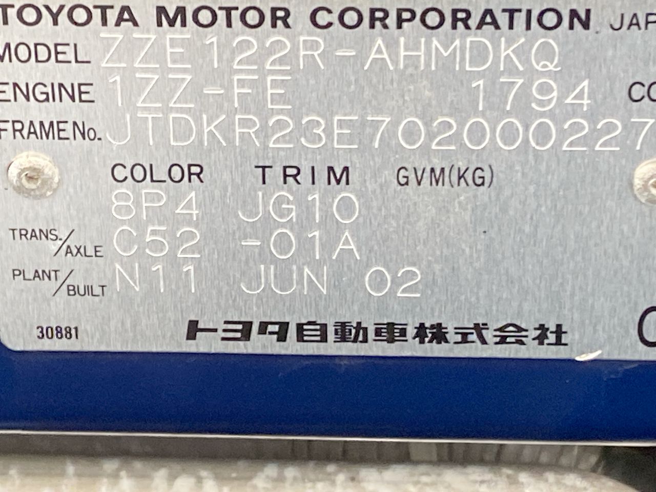 (SN:JTDKR23E702000227) (126182-15)