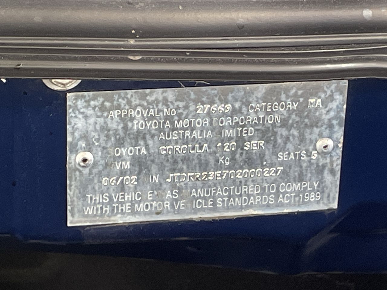 • VIN: JTDKR23E702000227