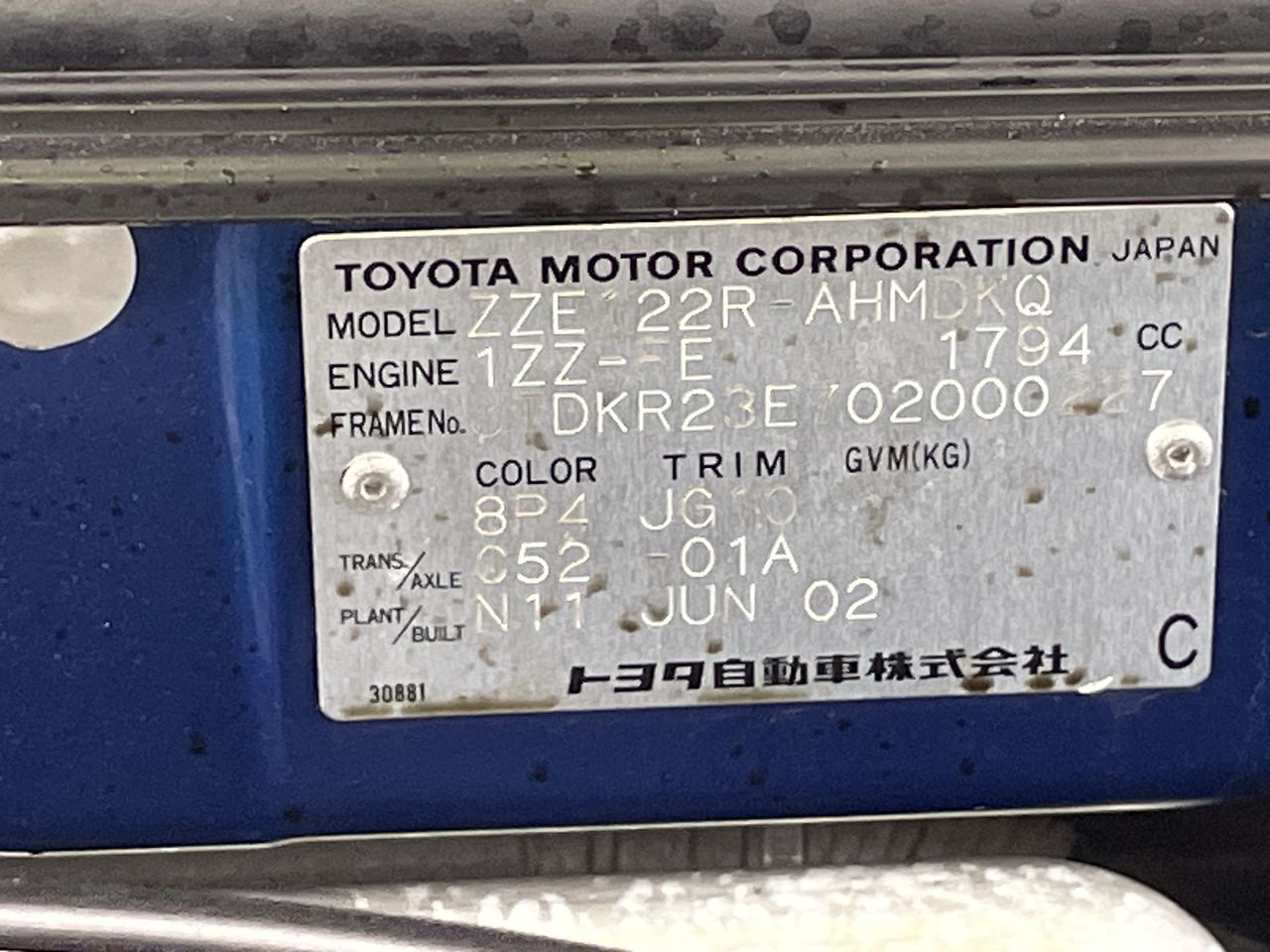 (SN:JTDKR23E702000227) (106453-2)