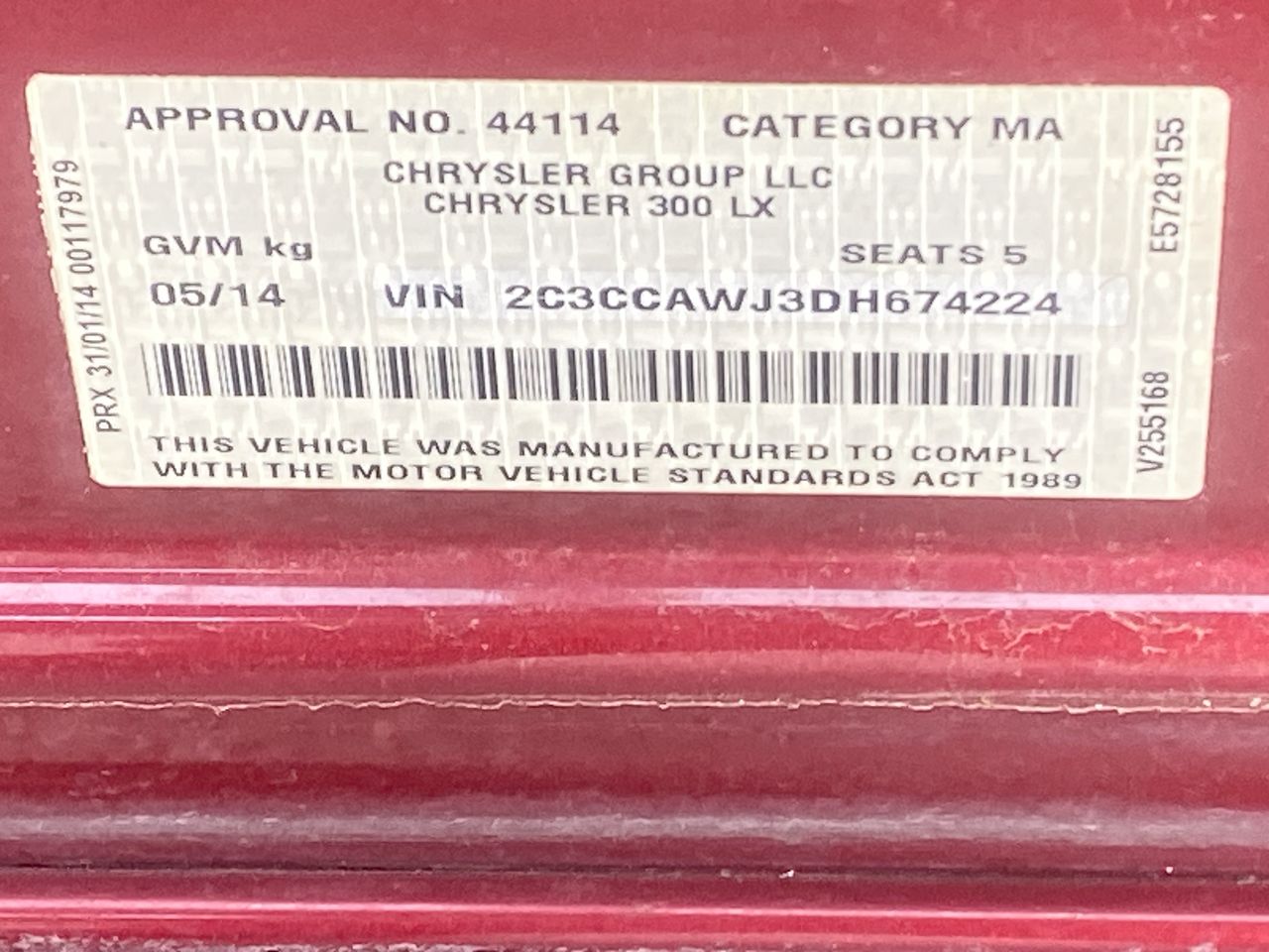 • VIN: 2C3CCAWJ3DH674224