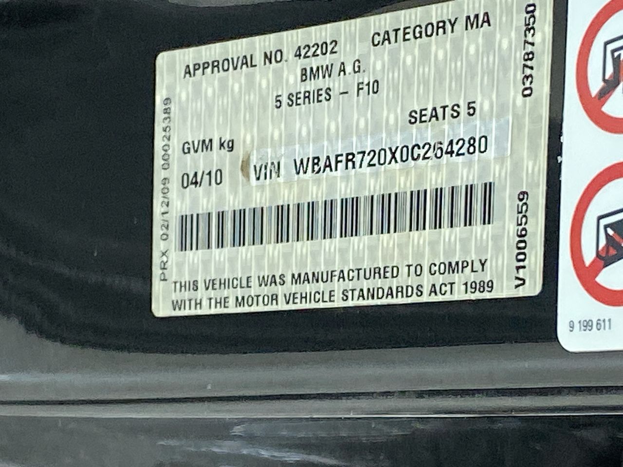 • VIN: WBAFR720X0C264280