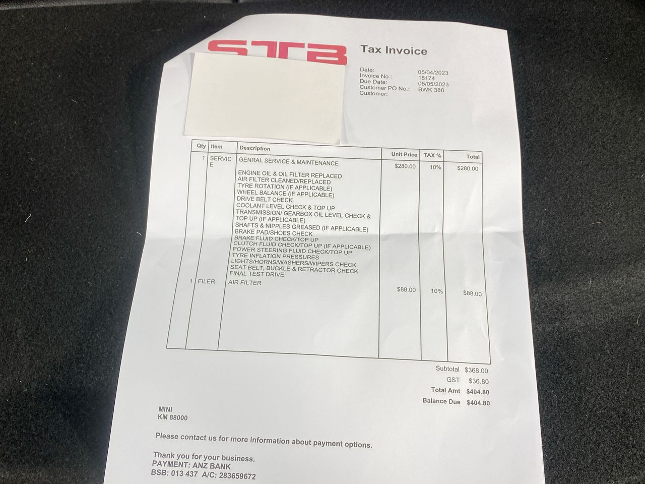 | GST: | Inclusive (see below note) | ||||||||||||||||