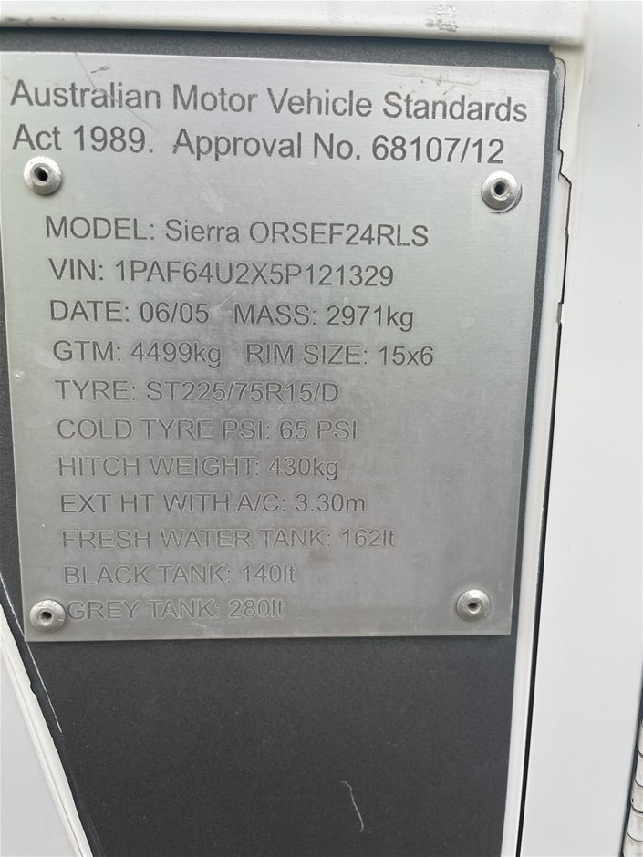 2005 SIERRA 5TH WHEELER CARAVAN - (WOVR-INSPECTED)- NO RESERVE
