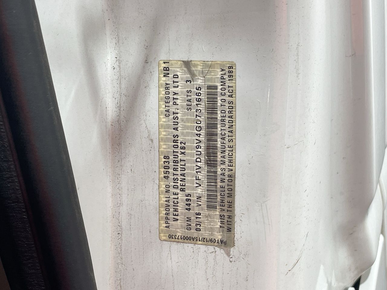 (SN:VF1VDU9V4G0731665) (128716-1)