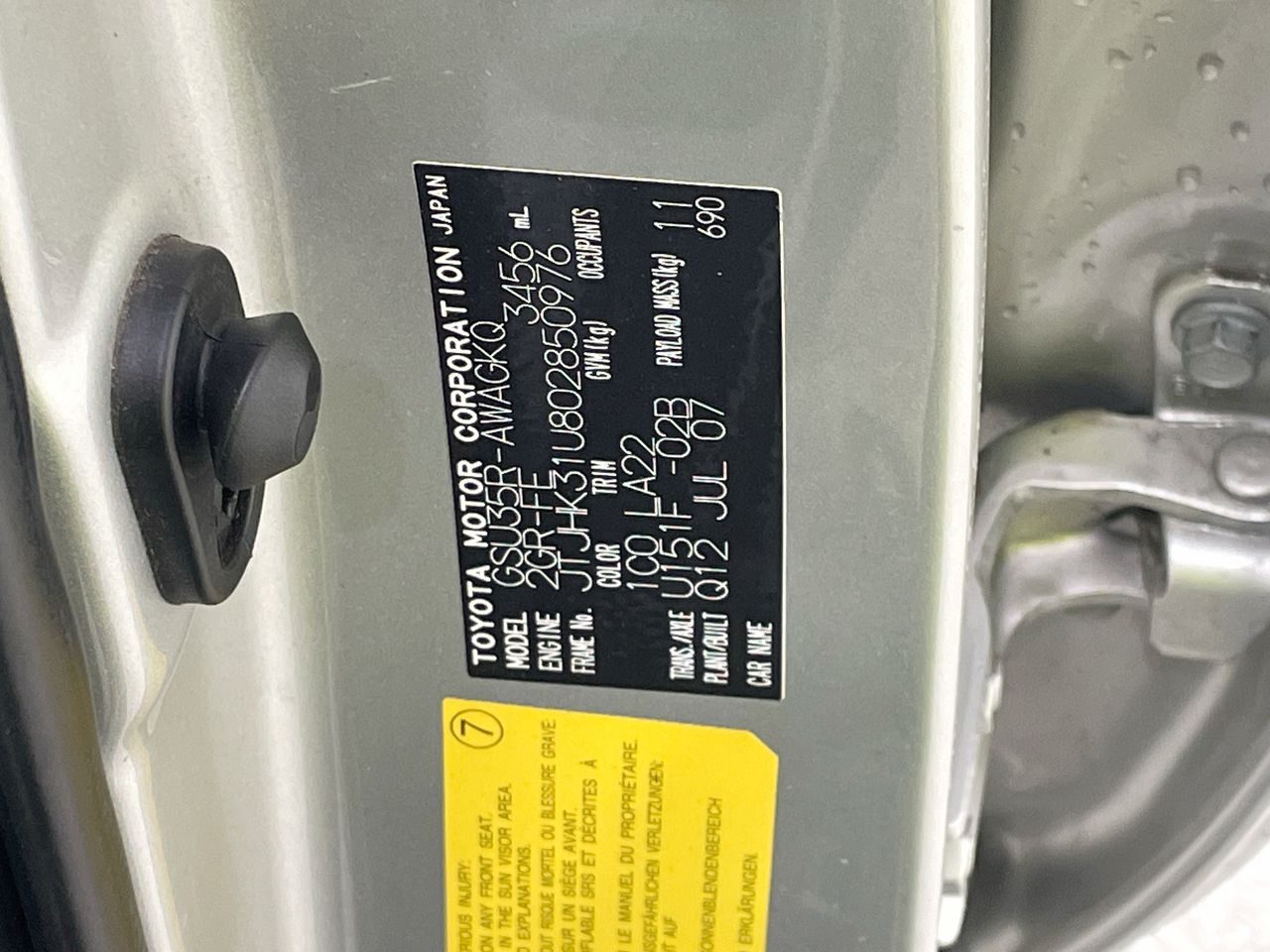 Part of Sale 2007 Lexus RX RX350 SPORTS GSU35R Automatic Wagon