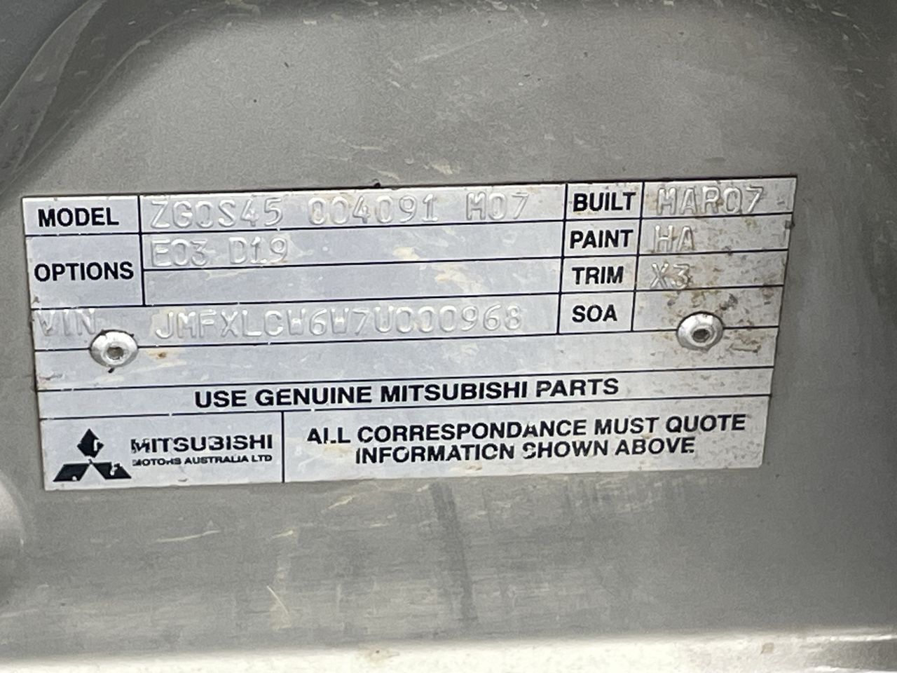 Part of Sale 2007 Mitsubishi Outlander VR ZG Automatic Wagon