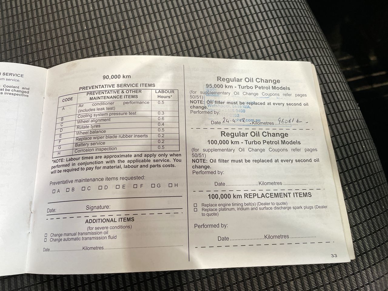 • Dents or marks on body consistent with age and kilometres.