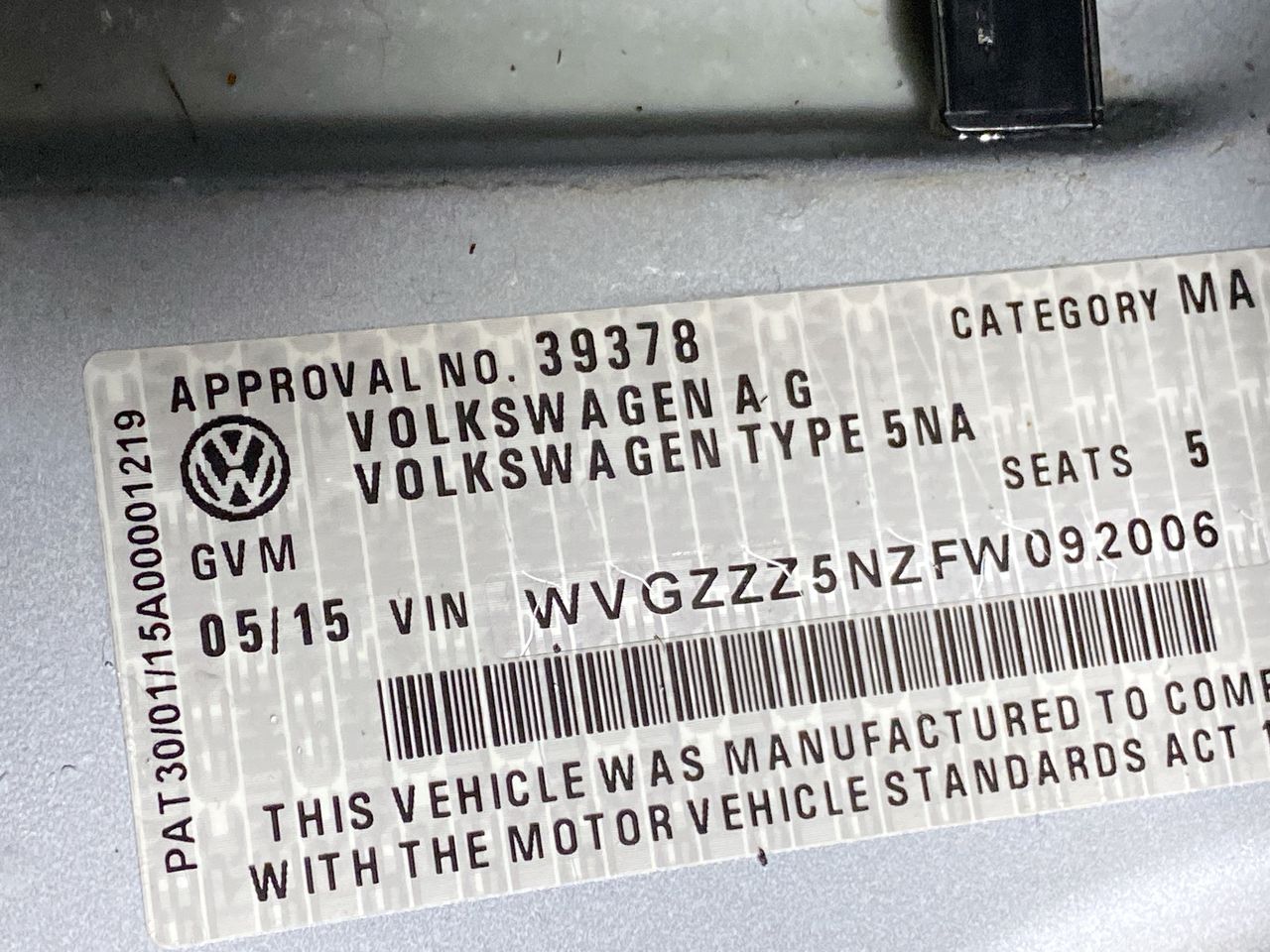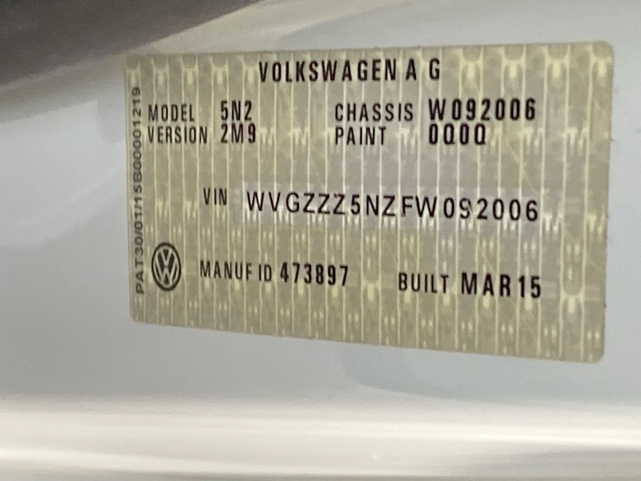 (SN:WVGZZZ5NZFW092006) (123863-2403)