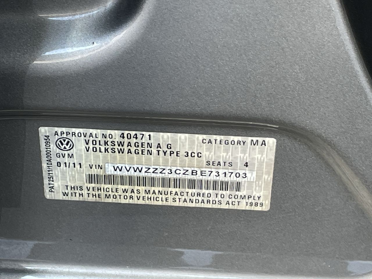 (SN:WVWZZZ3CZBE731703) (130213-1)