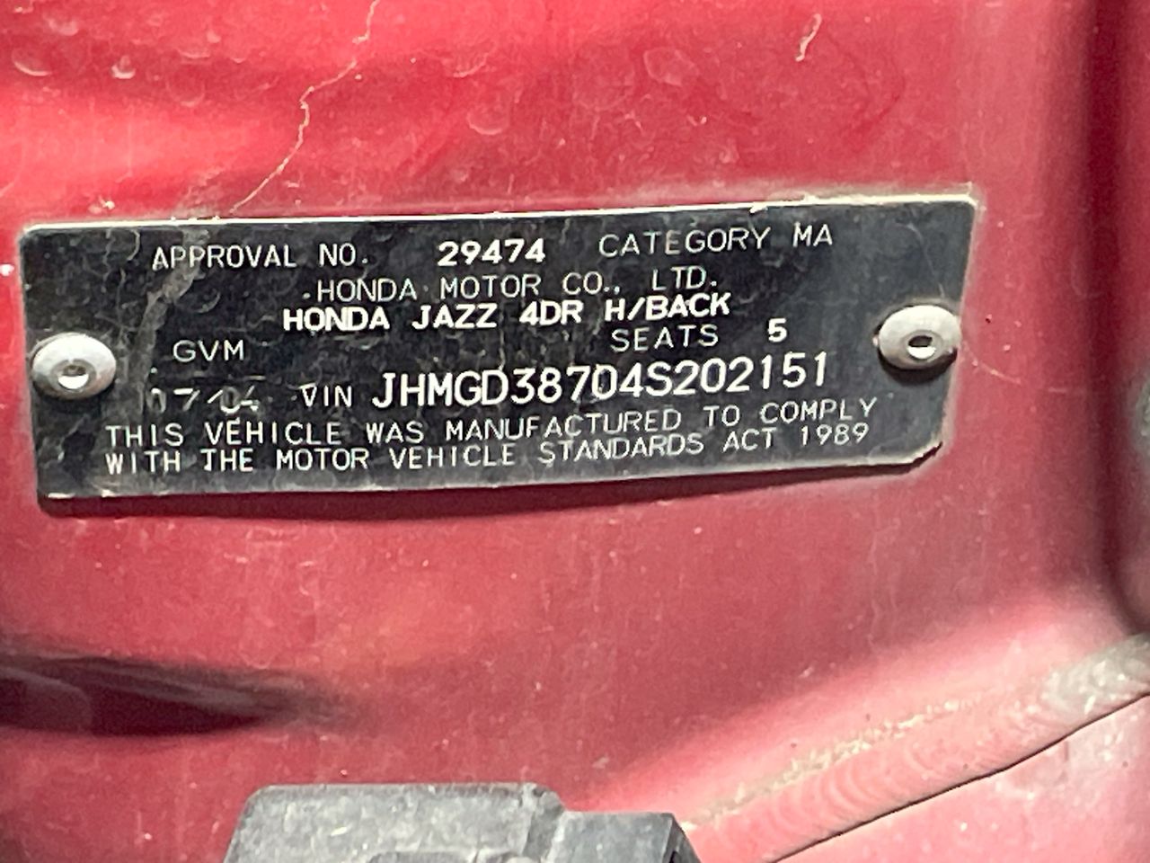 • VIN: JHMGD38704S202151