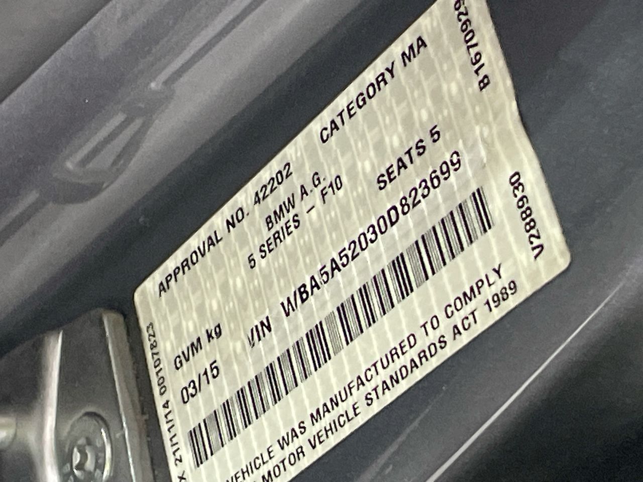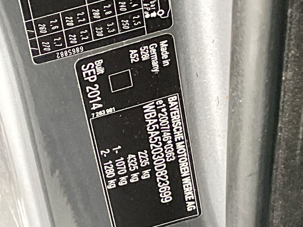 • VIN: WBA5A52030D823699