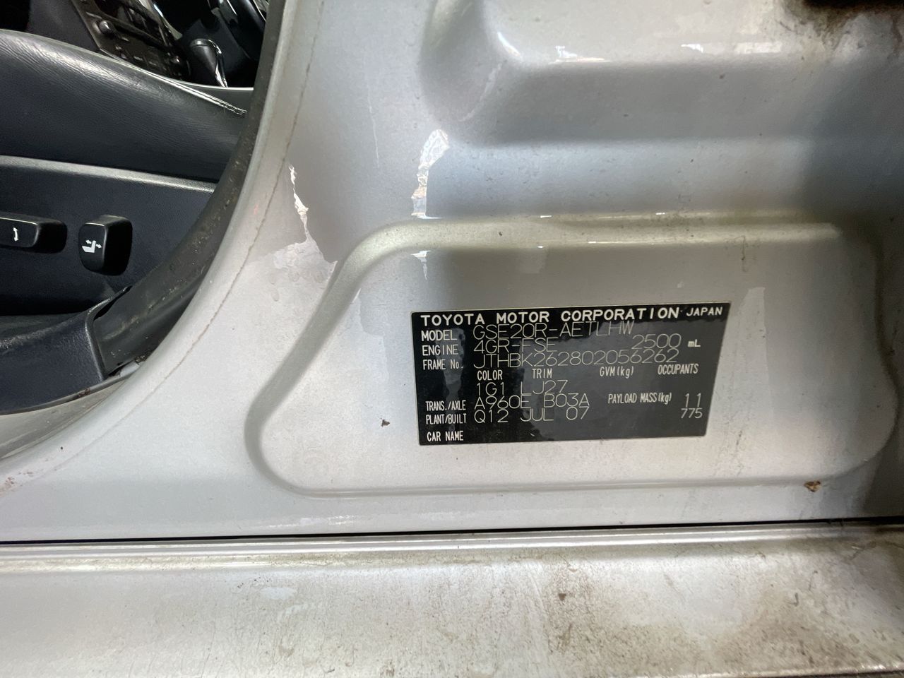 Part of Sale 2007 Lexus IS IS250 Prestige Automatic Sedan