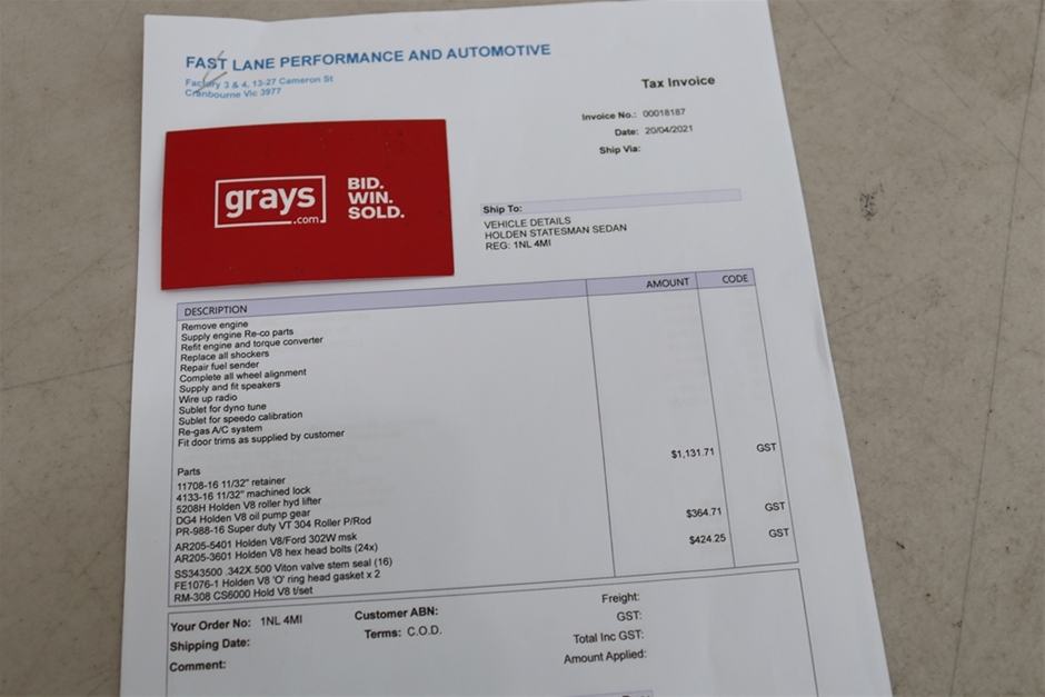 • Your paid Grays Invoice (you will not need the old registration paperwork, these will not be given with the vehicle)