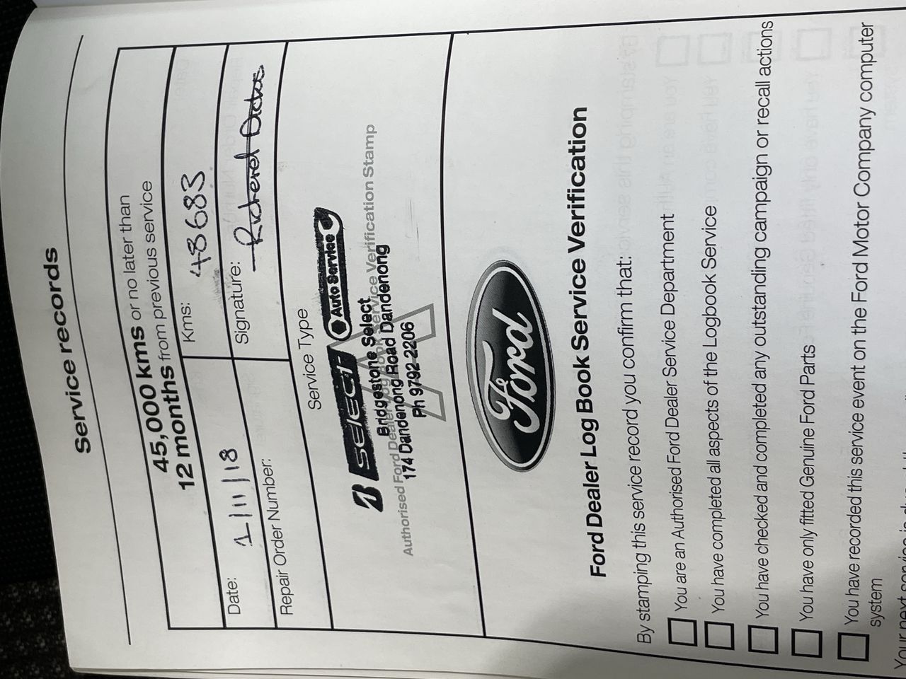 • Service History: Yes
