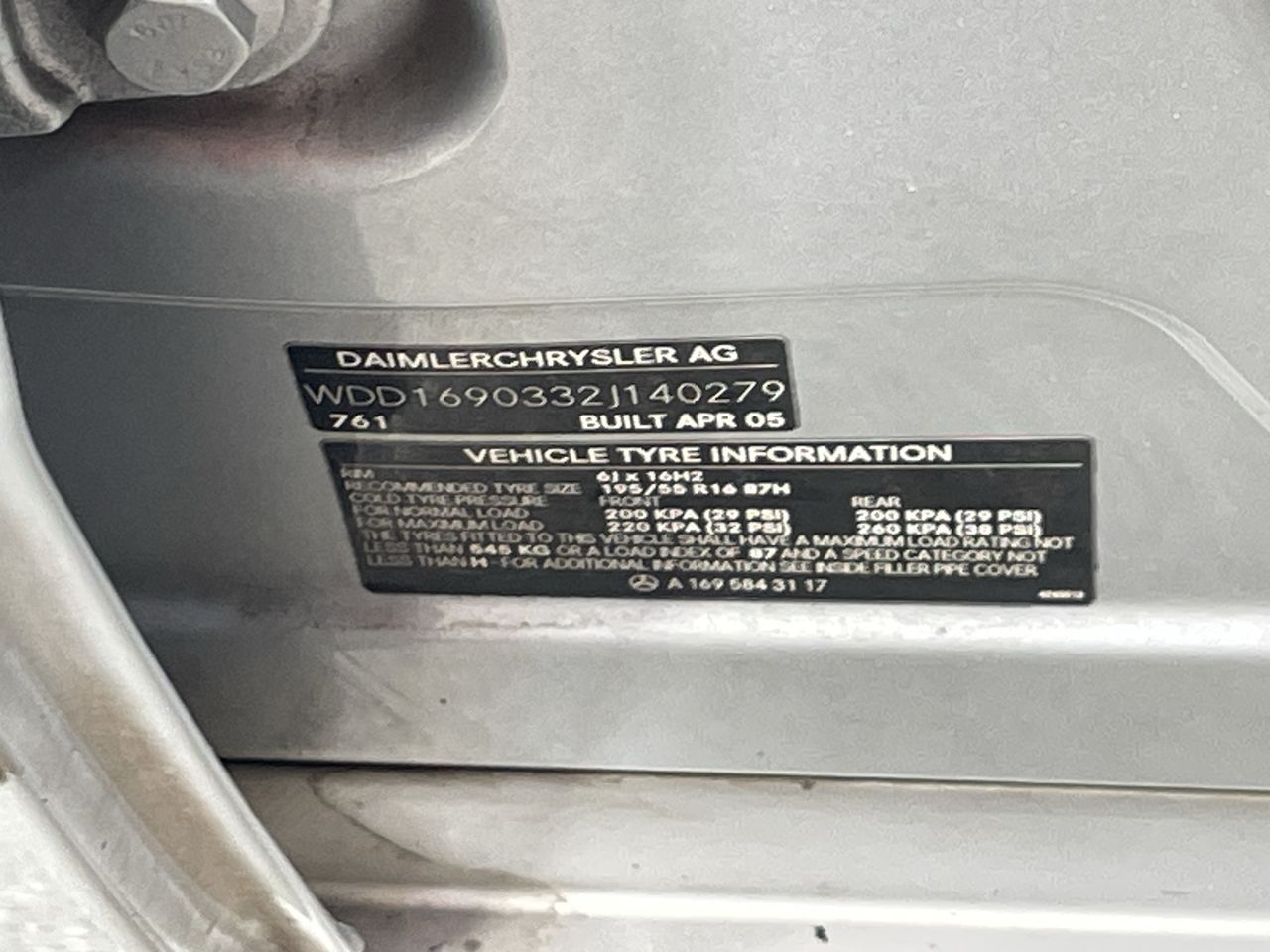 • VIN: WDD1690332J140279