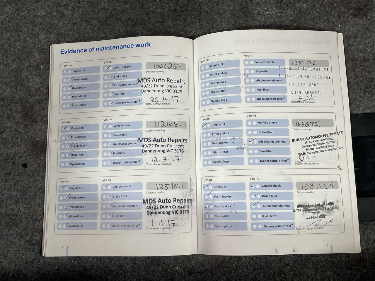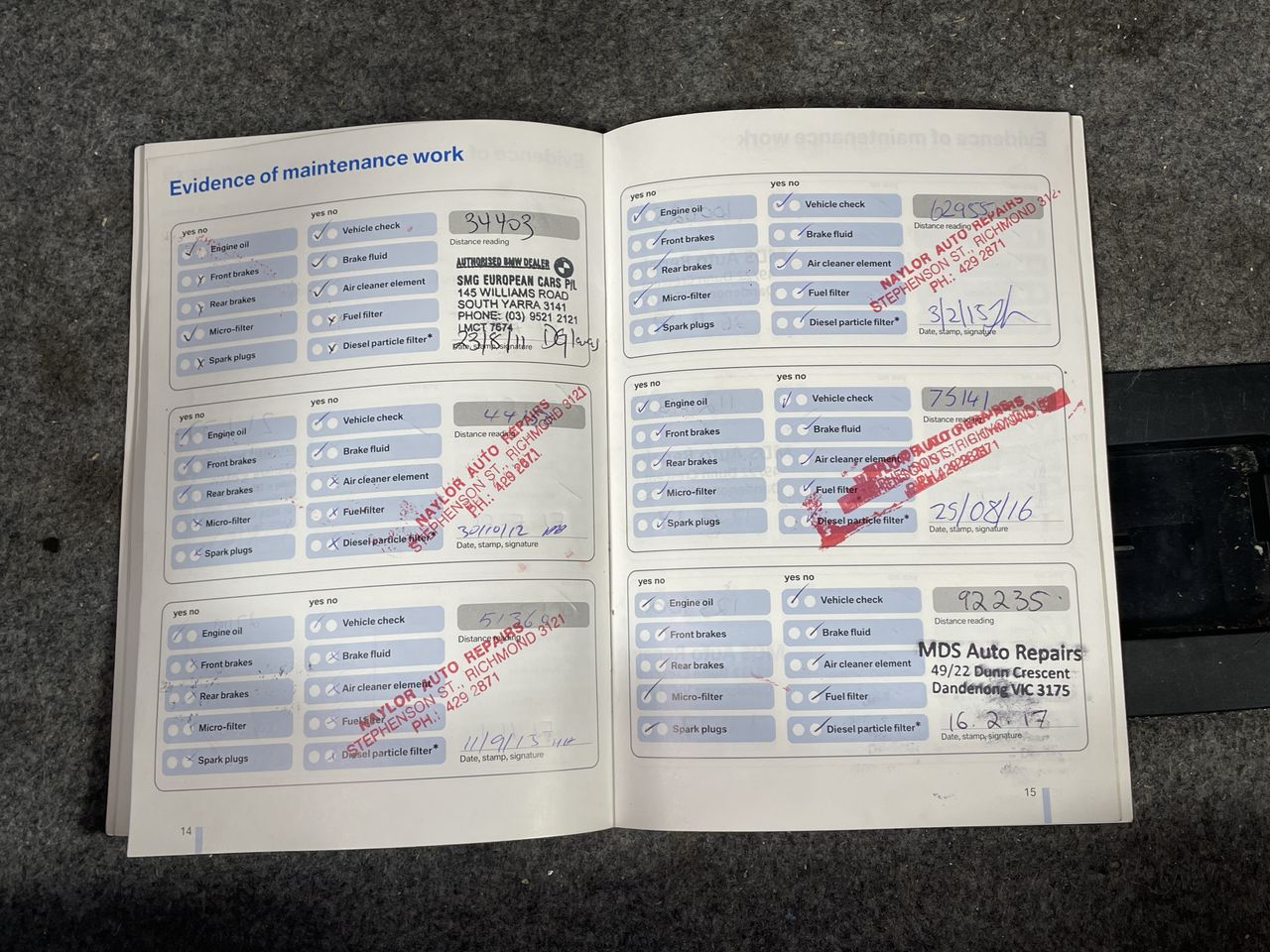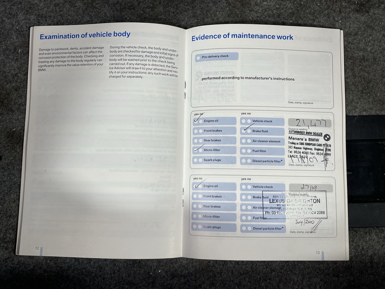 • Dents or marks on body consistent with age and kilometres.