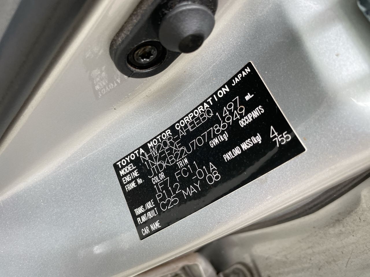 • VIN: JTDKB22U707786949