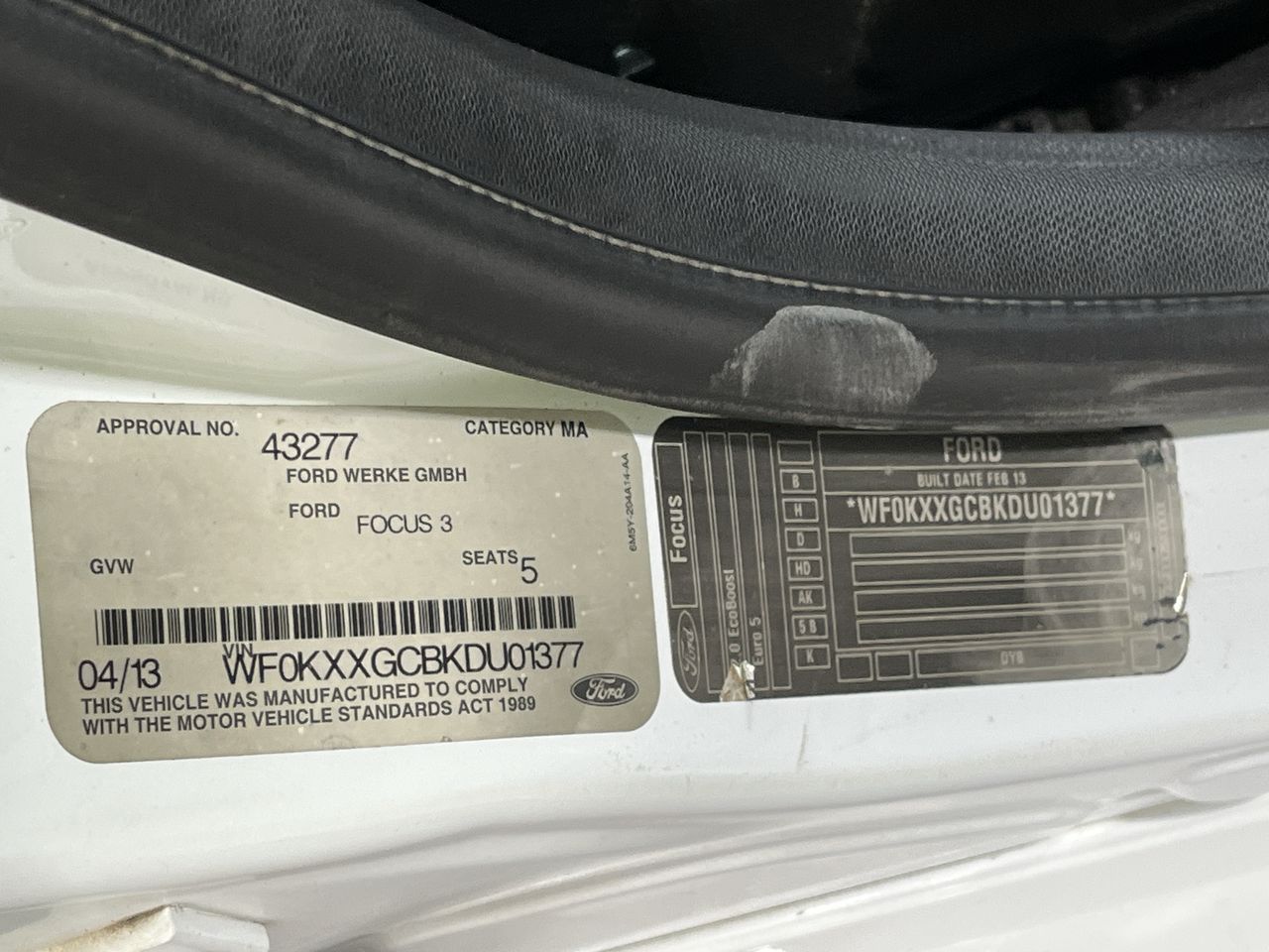 (SN:WF0KXXGCBKDU01377) (133292-1)