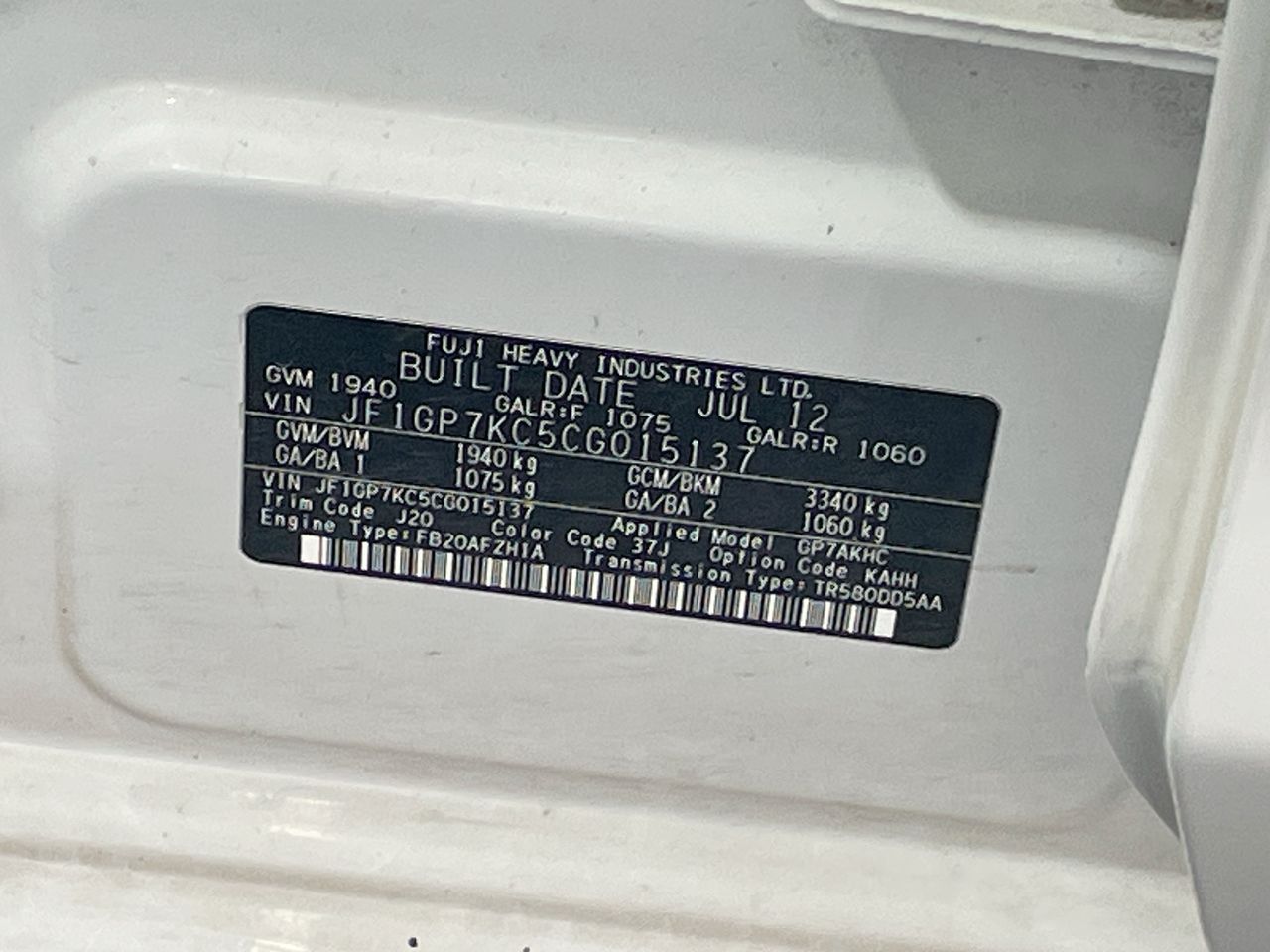 (SN:JF1GP7KC5CG015137) (133706-1)