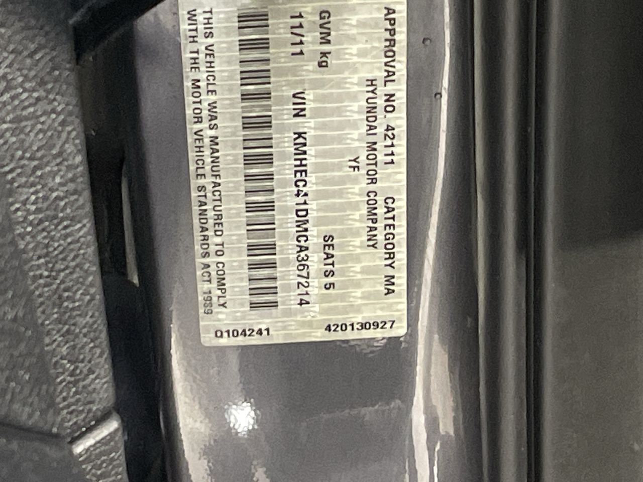 (SN:KMHEC41DMCA367214)