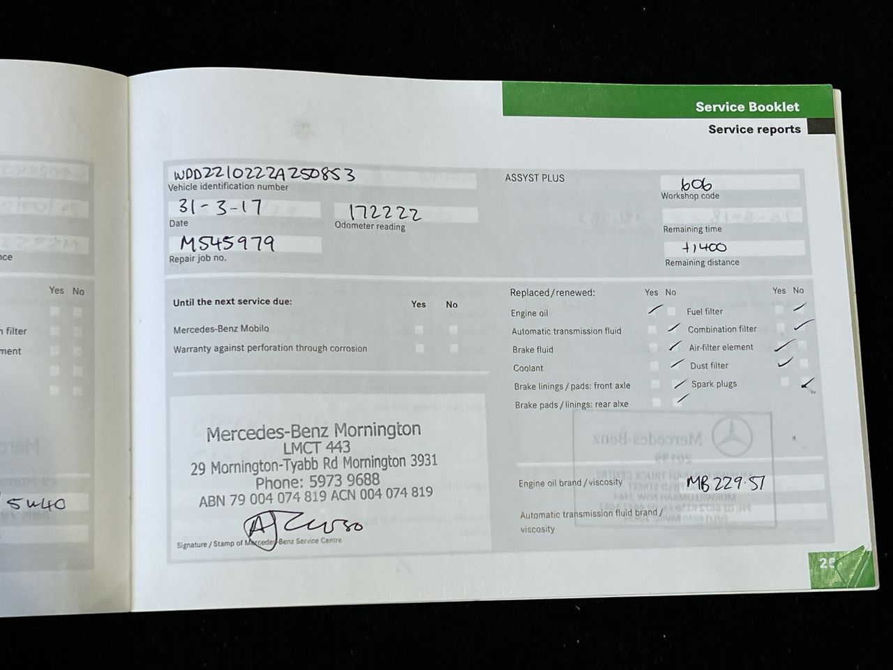 (SN:WDD2210222A250853) (116343-2)