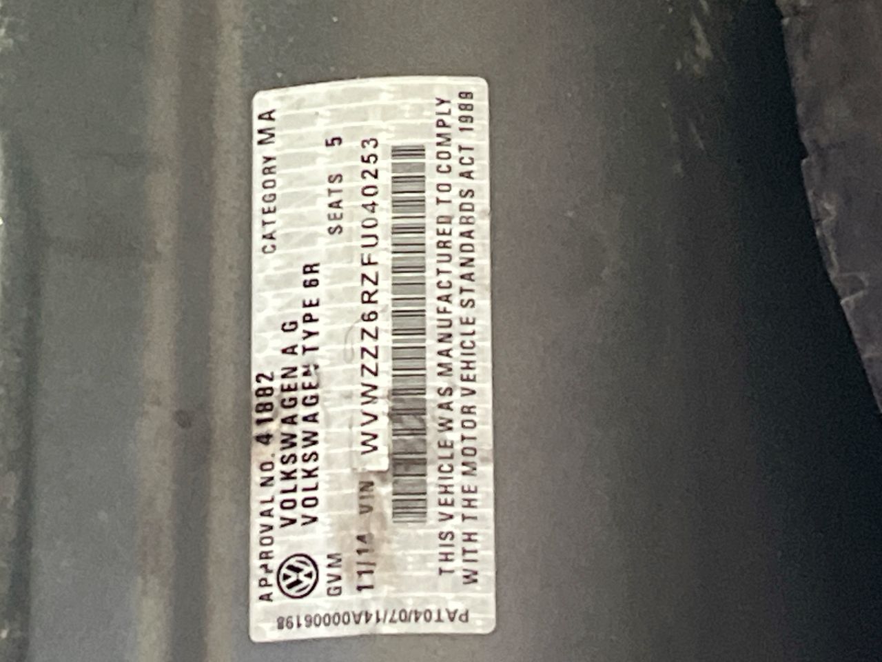 (SN:WVWZZZ6RZFU040253) (134773-3)