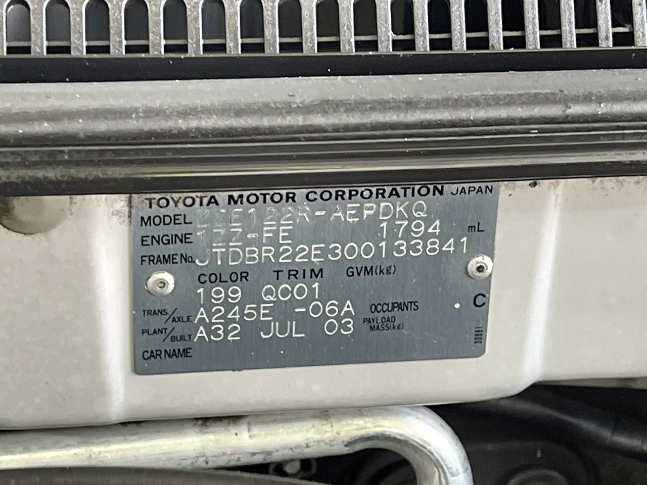 (SN:JTDBR22E300133841) (135029-1)