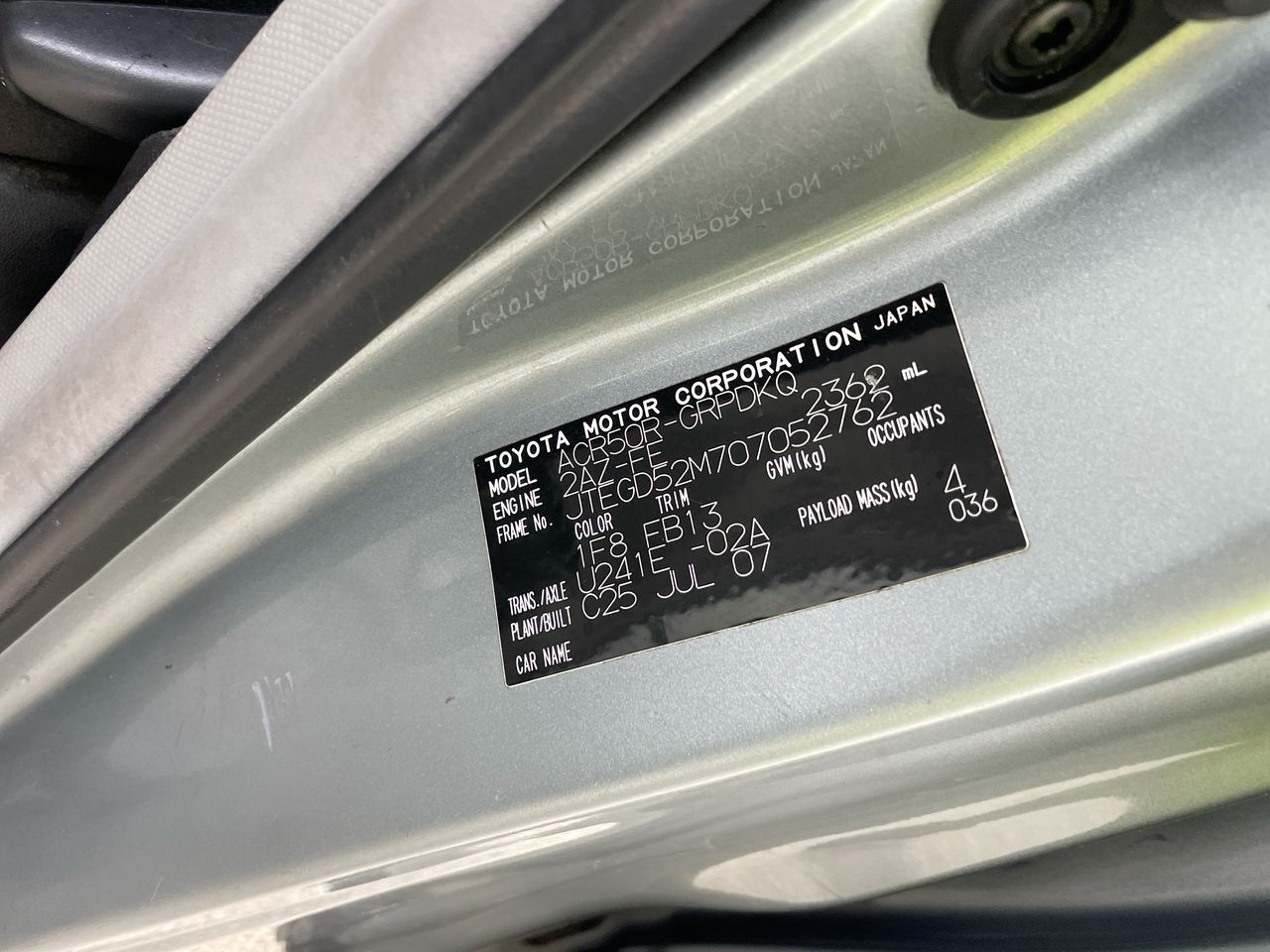 | Part of Sale | 2007 Toyota Tarago GLI ACR50R Automatic 8 Seats People Mover | ||||||||||||||