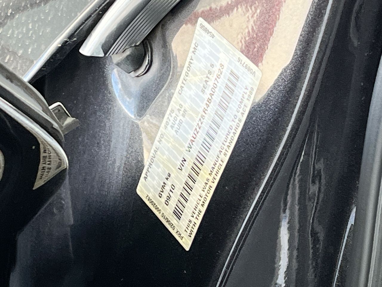 Motor Dealer Licence: LMCT11156 (SN:WAUZZZ8R4BA007628) |