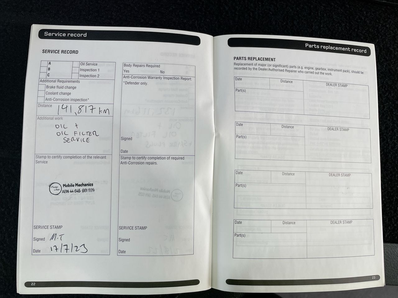 • Dents or marks on body consistent with age and kilometres.