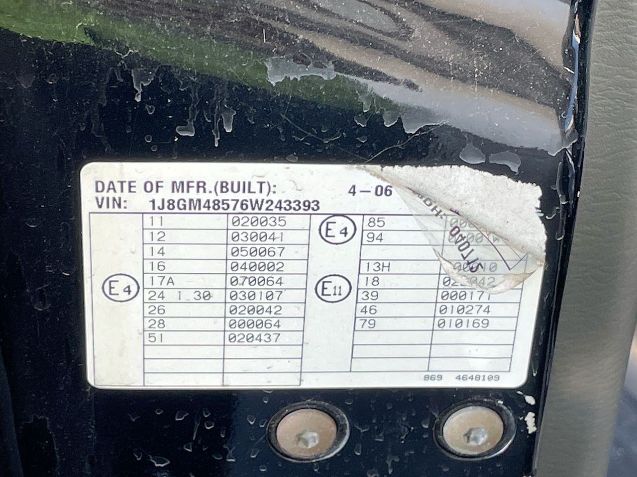 (SN:1J8GM48576W243393) (119241-3)