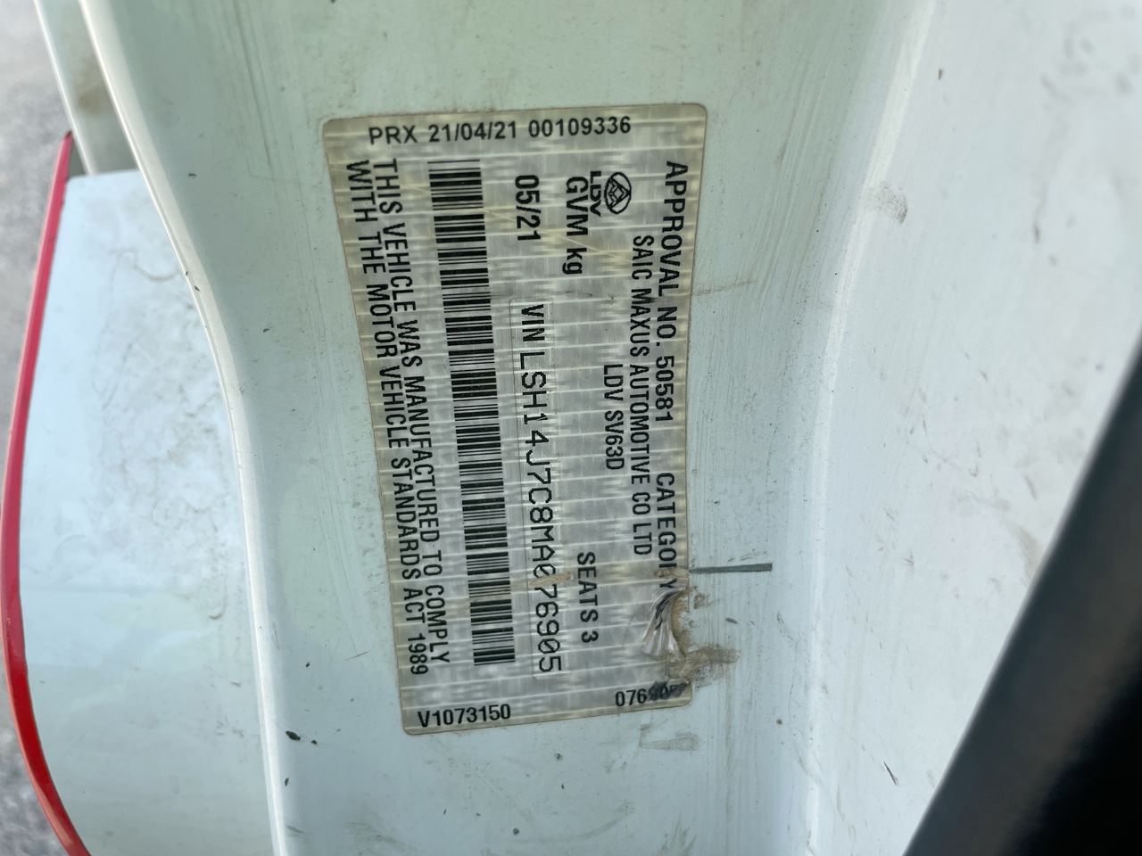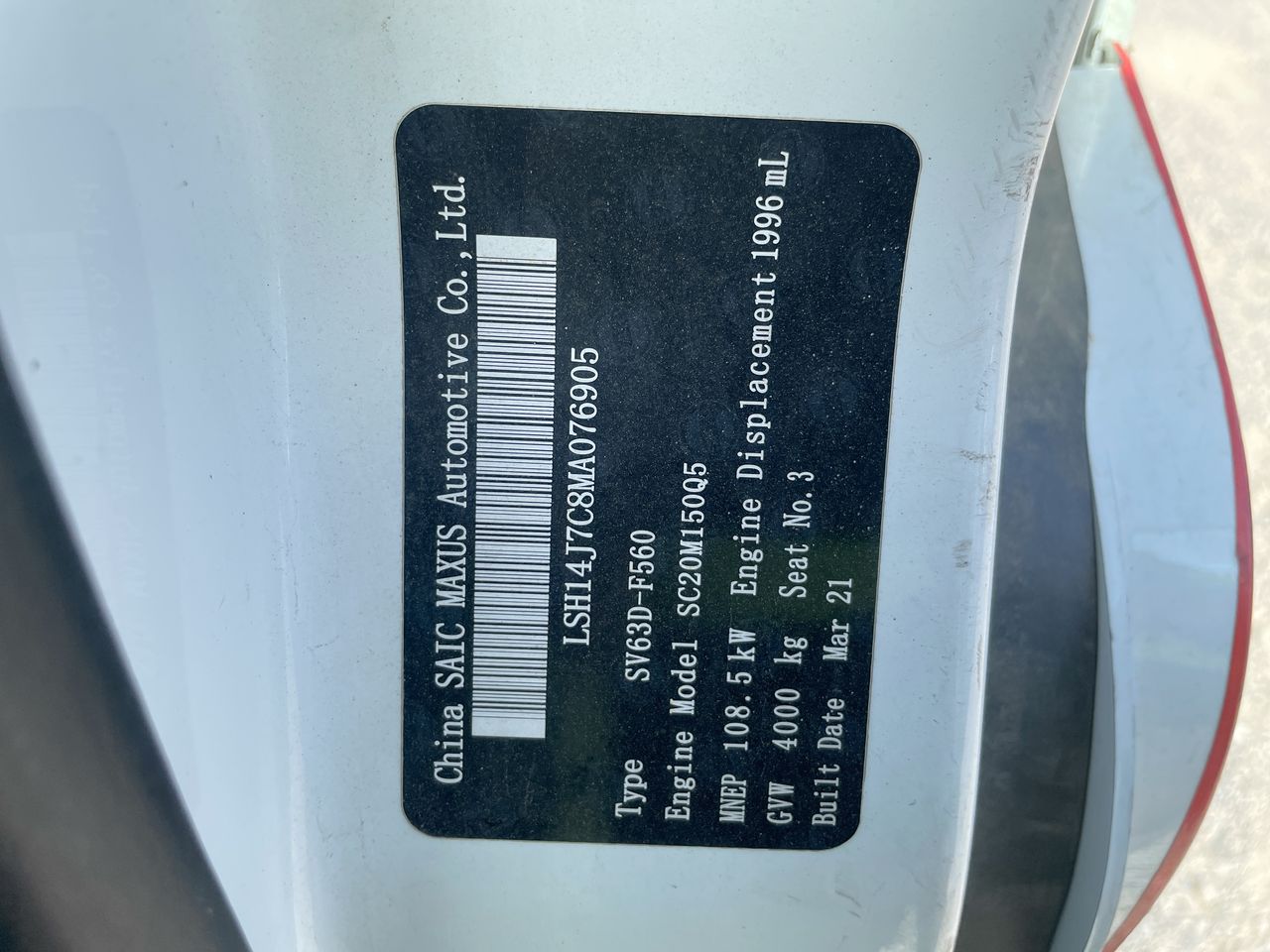 • VIN: LSH14J7C8MA076905