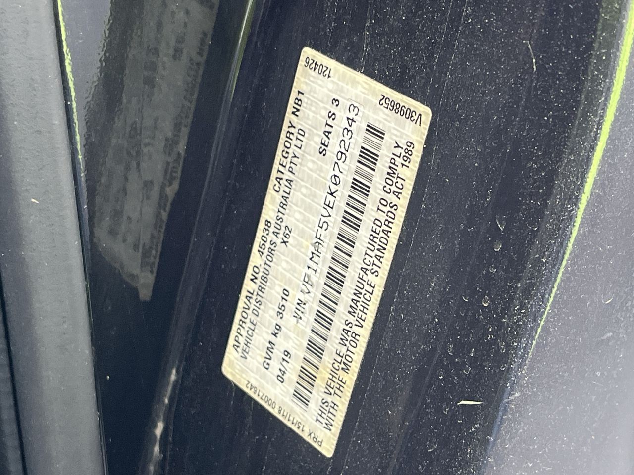 (SN:VF1MAF5VEK0792343) (126557-678)