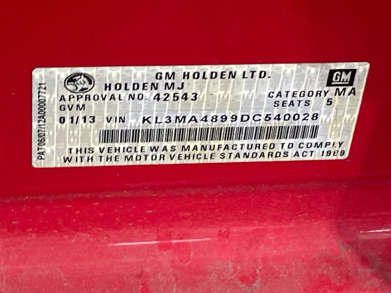 (SN:KL3MA4899DC540028) (104544-380)