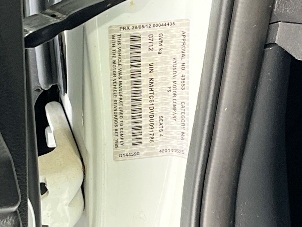 • VIN: KMHTC61DVDU091788