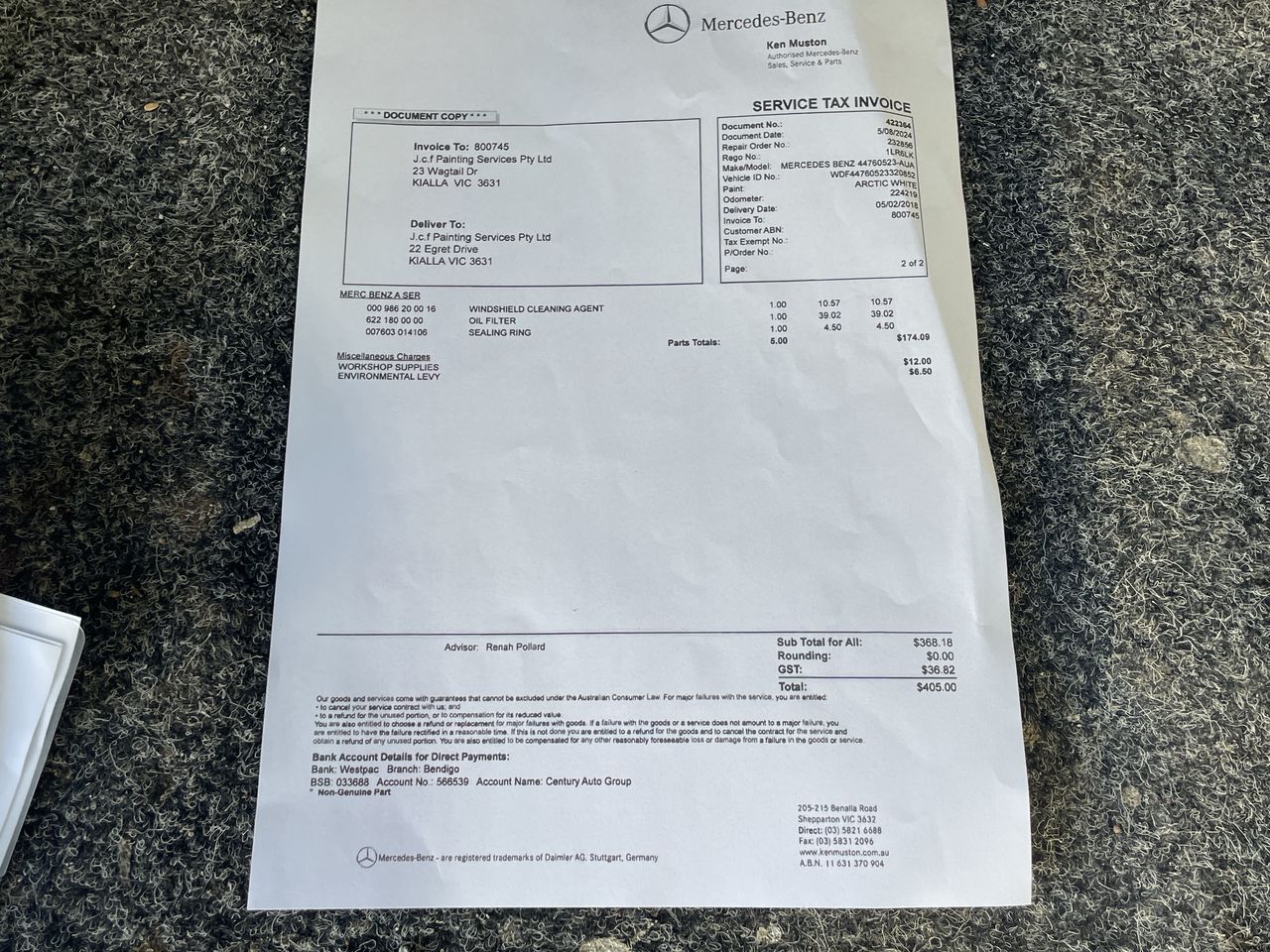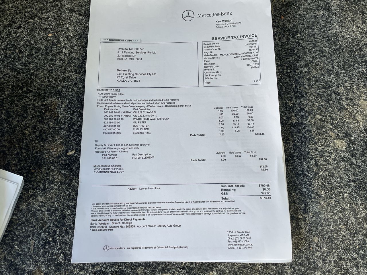 Any payment enquiries, please email accountsreceivable@grays.com.au