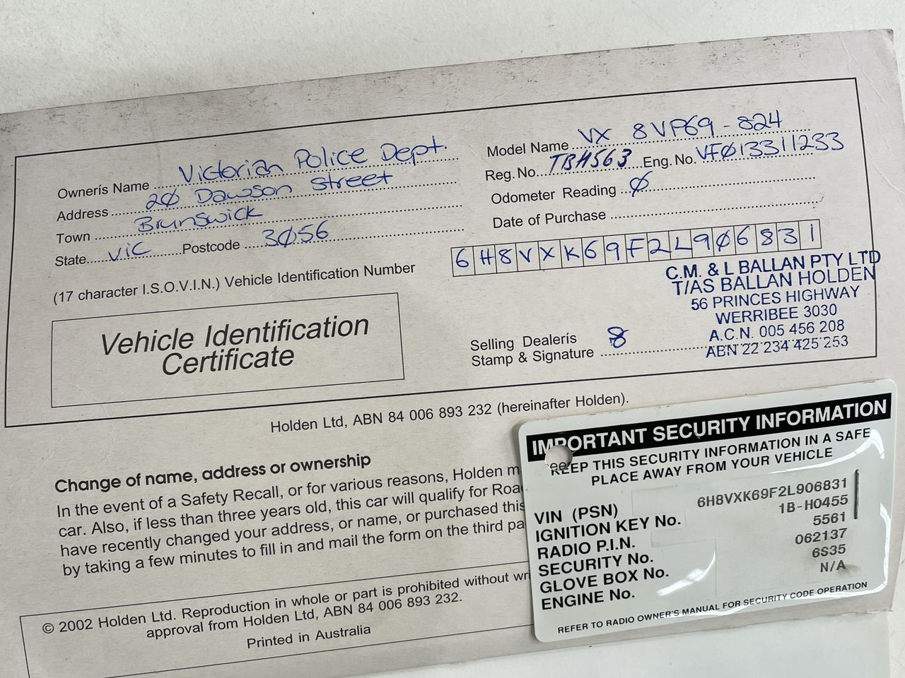 As registration and ownership requirements vary from state to state buyers should familiarise themselves with the registration requirements of the state in which the vehicle will be registered. As is standard auction practice the buyer is responsible for state transfer fees, duties etc. that may apply. Please note: Current Vic registered vehicles can only be transferred to Vic license holders. The number plates will be removed if the vehicle is unregistered or has interstate plates. You can acquire an unregistered vehicle permit from your local state roads authority for pick up. For VIC registration, once your invoice is paid, you’ll need to visit Vic Roads with: