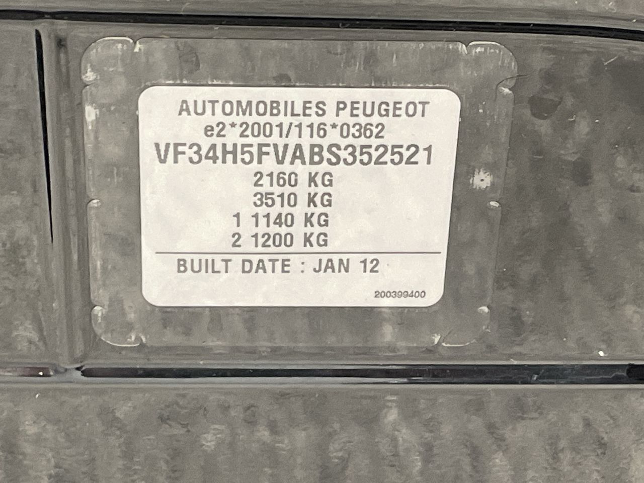 (SN:VF34H5FVABS352521) (130451-2481)