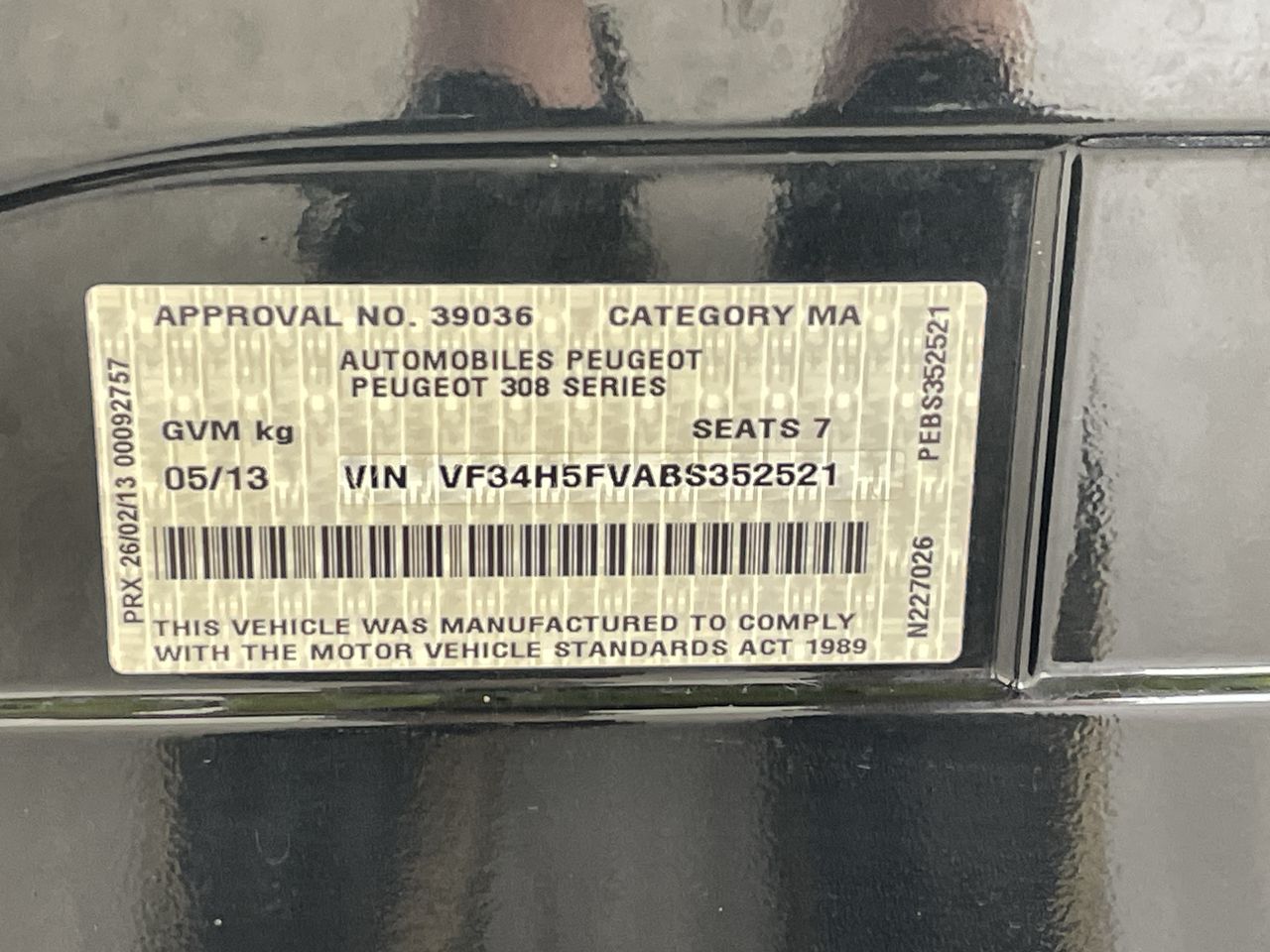 2012 Peugeot 308 Active Touring Turbo Automatic 7 Seats Wagon