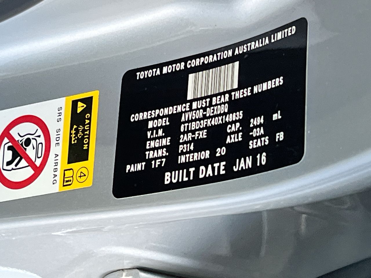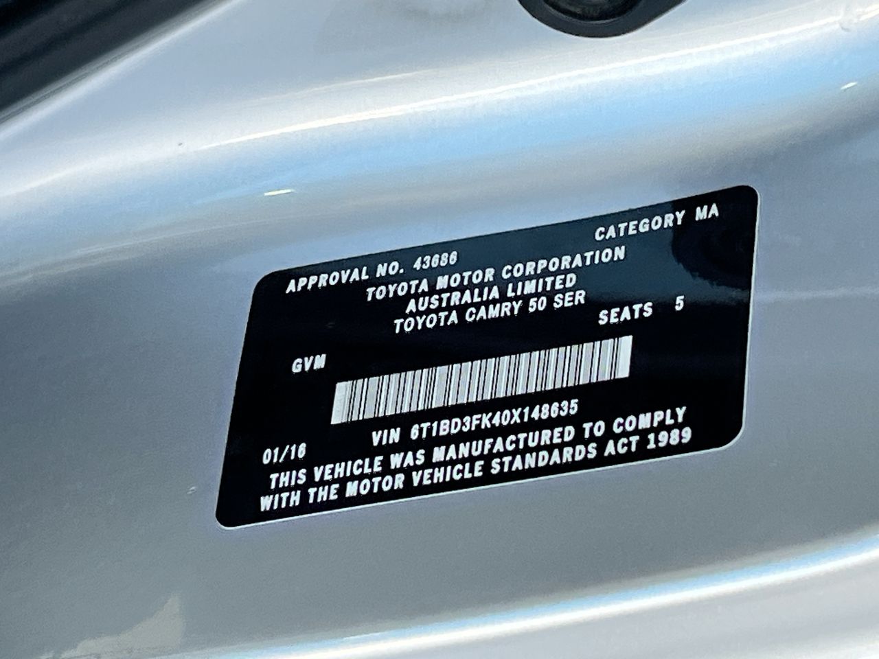 (SN:6T1BD3FK40X148635) (126508-16)